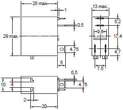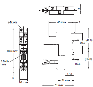 Kích thước chân đế P2RFZ-08-E (Bán riêng không kèm theo Relay):